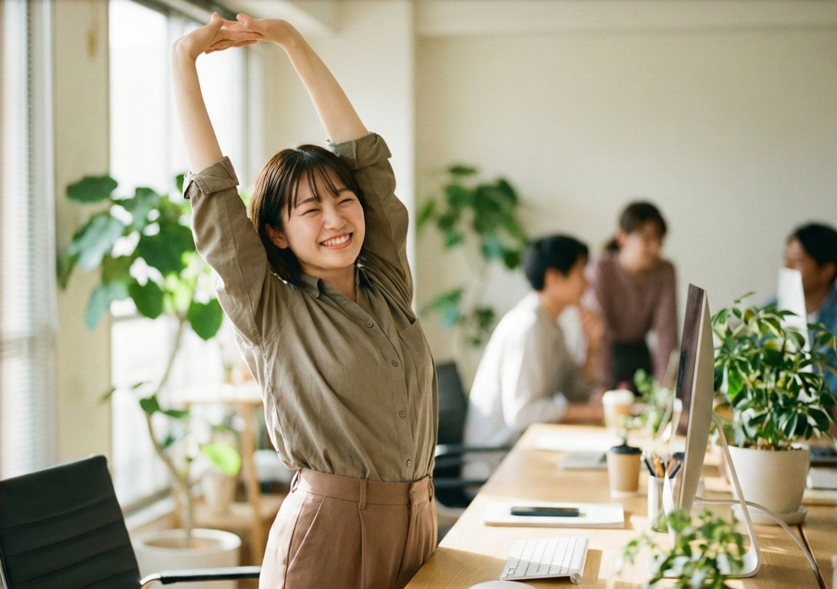 作業をしていた場所から離れ、少し歩いたり、外の景色を眺めたりしてみましょう。